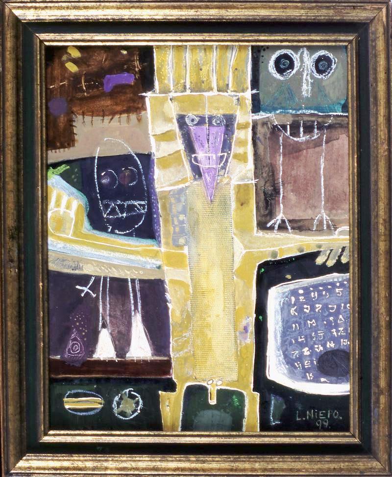 The Teacher By Lez Niepo. SOLD! Number- D699 Title: "The Teacher" . Medium - Mix media on masonite completed in 1999. Dimension - 17 ¼" x 13 ¾" in. 44" x 35" cm. Comments and Suggestions- On masonite board (framed). You can also email meor phone 1-604-487-0825 => paintings => exhibitions => artifacts => bio => contact => home Redistribution or republication of these pages or images in any form requires express written consent. Website services is provided by Sun Coast Designs. www.ArtifactsCollectables.com Copyright © 1997- 2013 All rights reserved. Visit my new site:www.artifactscollectables.com