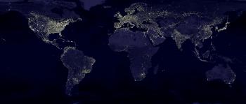 Satellite night photo of Earth, you can scroll across and up and down to see population density with your arrow keys.